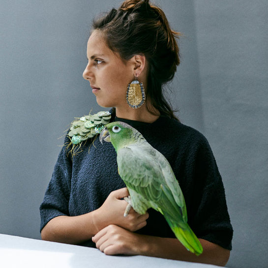 Los collares, broches y bolsos de esta colección no decoran: advierten, contienen, protegen. Son órganos inventados, expansiones del sistema nervioso, tejidos imaginarios.