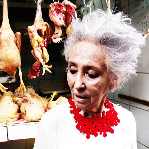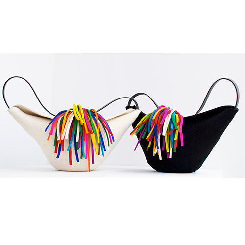 The collection is made from recycled felt, cut from traditional Andean hats. I cut each piece by hand and attach them one by one—almost like building a textile map of what we don’t want to see.